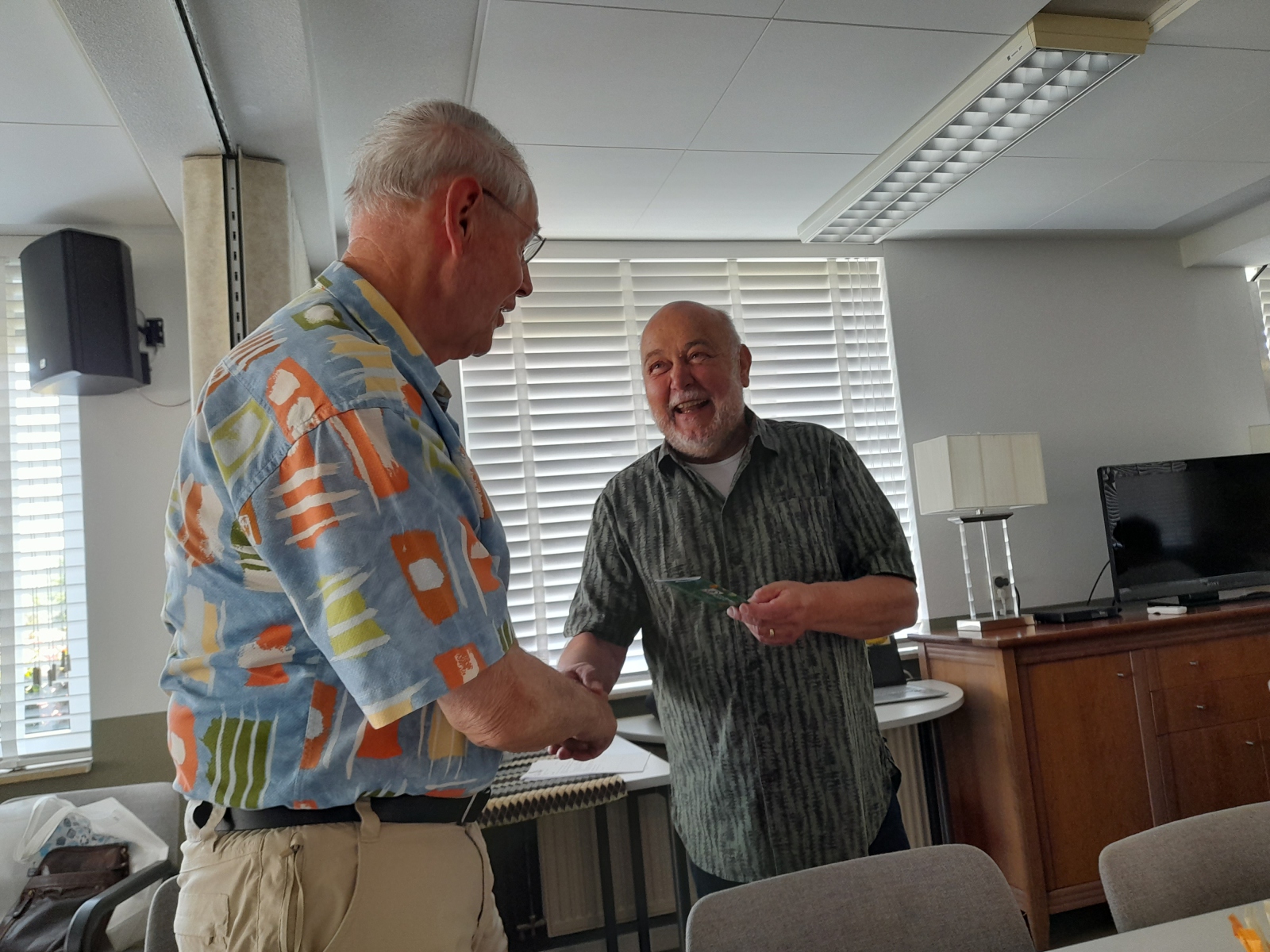 Dhr. Har Mennen en Frans Peters nemen afscheid als fietsbegeleiders